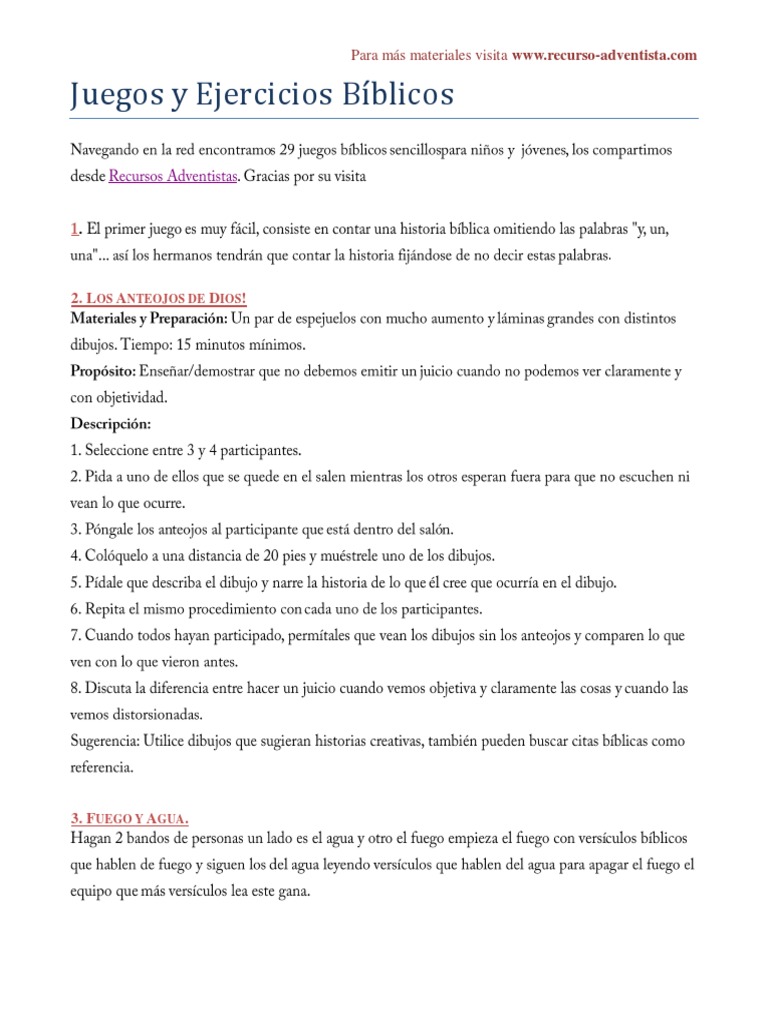 Los adventistas del séptimo día están dedicados a ayudar a las personas a entender la biblia para encontrar la libertad, la curación y la esperanza. Juegos biblicos razvlecheniya igry na android. Comentario en pdf de la leccin 5 para el segundo trimestre de 2015. Juegos biblicos adventistas para jovenes. Aqui hay algunos ejercicios biblicos para descargar: